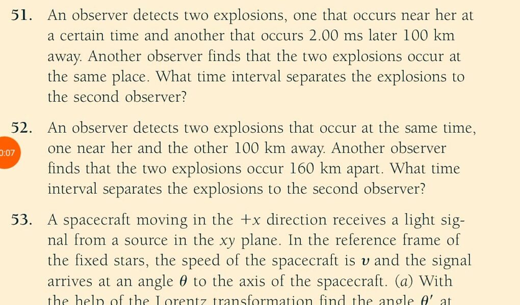 concept of modern physic 6 edition beiser chapter 1 problem 52 solution.An observer detects two explosions that occur at the same time,