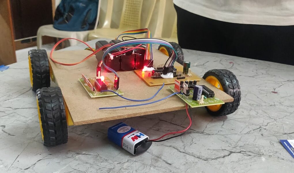 This consists of a Microcontroller based control system, battery powered DC motors and. To perform the task, Microcontroller is loaded with an intelligent program written in embedded ‘C’ language.